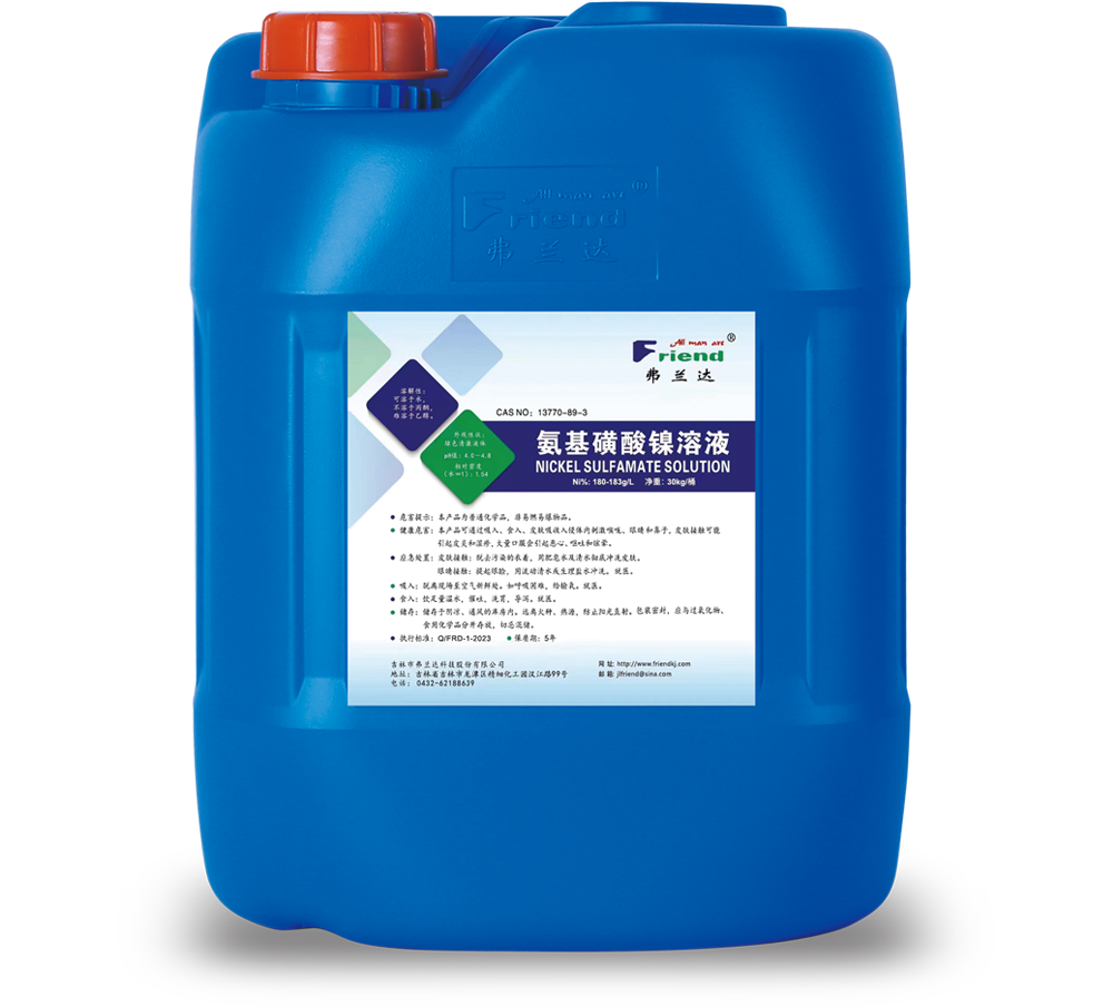 吉林市弗蘭達(dá)科技股份有限公司成立于2004年,位于吉林省吉林市龍?zhí)督?jīng)濟(jì)開發(fā)區(qū)精細(xì)化工園漢江路99號(hào),注冊(cè)資本1000萬元,占地2萬平方米。專業(yè)從事醋酸鎳、氨基磺酸鎳、堿式碳酸鎳、氨基磺酸鈷等系列產(chǎn)品的研發(fā)與生產(chǎn)。產(chǎn)品均通過歐盟Reach和Rohs認(rèn)證,生產(chǎn)制造過程通過了ISO9001質(zhì)量管理和ISO14001環(huán)境管理體系認(rèn)證,擁有自主進(jìn)出口經(jīng)營權(quán)。本著追求卓越、回報(bào)社會(huì)的企業(yè)宗旨,本著誠信擔(dān)當(dāng)、品質(zhì)卓越、激情創(chuàng)新、和諧共贏的核心價(jià)值觀,為客戶提供優(yōu)質(zhì)服務(wù),做行業(yè)知名品牌。產(chǎn)品主要應(yīng)用領(lǐng)域:鋁合金陽極氧化、著色、封閉劑行業(yè);精密電鍍、電子電鍍行業(yè);石油化工、機(jī)械行業(yè)的催化劑制造、電鍍主鹽等。